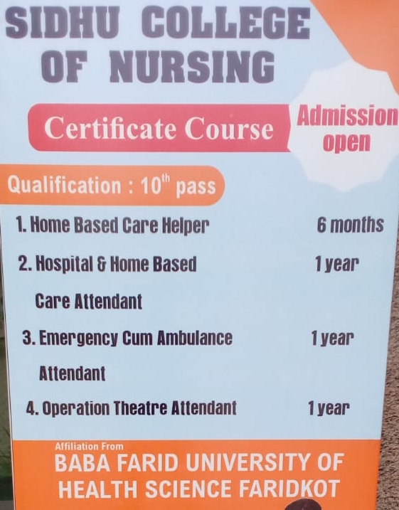 Now-a-days, as the quality of education and its methods are growing very fast with latest computerized technologies and skills; the need to upgrade the College into collegiate level come to the mind of the management. The joint and untiring effort of management, all the directors, the principal and nursing staff made it possible to upgrade it with collegiate programme in the year 2015. We have now started the collegiate programme with Post Basic B.Sc. Nursing by an approval of 30 seats from Indian Nursing Council New Delhi , Baba Farid University of Health Sciences Faridkot, Punjab Nurses Registration Council , Chandigarh and Govt of Punjab.
